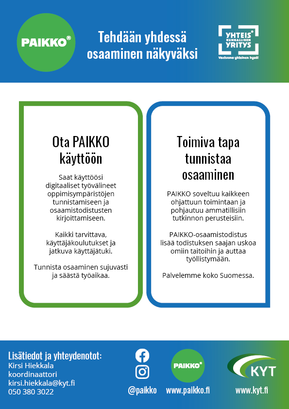 PAIKKO® perustuu ammatillisiin tutkinnon perusteisiin ja on käytössä koko Suomessa.