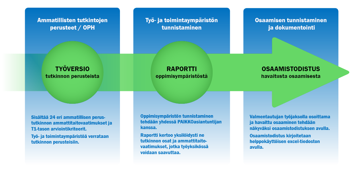 Työpajojen erilaisuus haastaa Kun PAIKKO hankkeen alkaessa mietimme oppimisympäristön tunnistamisen käytäntöjä, suuren haasteen muodosti tietenkin työpajojen erilaisuus. Etsimme käytänteitä, jotka sopisivat niin pienille kuin suurillekin toimijoille. Ja jotka olisivat luotettavasti toistettavissa hyvin erilaisissa ympäristöissä ja työpaikoilla. Ja joiden toteuttaminen olisi riittävän käytännöllistä ja helppoa – ja ymmärrettävää. Tutkinnon perusteet kokonaisuutena koettiin työvalmennuksessa liian raskaaksi kokonaisuudeksi.…