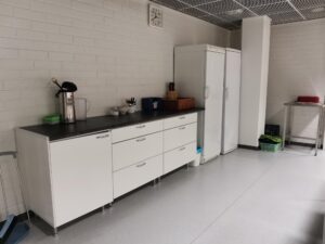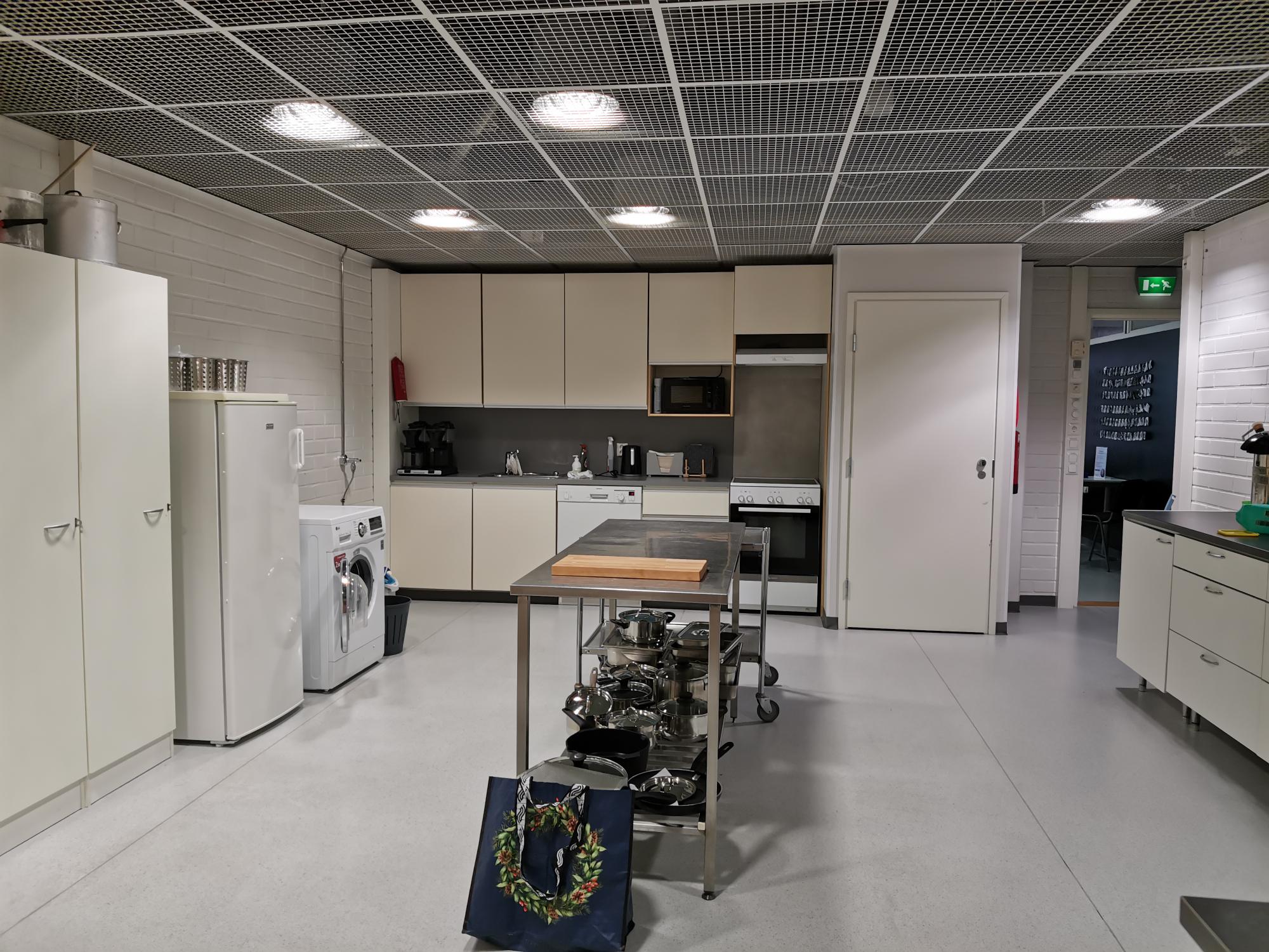 Keittiö: Kotikeittiövälineet, liesi, jääkaappi, pakastin, astianpesukone, uuni, mikroaaltouuni, kahvinkeitin, vedenkeitin, tehosekoitin, sähkövatkain, ruoanlaitto- ja leivontatarvikkeita. Kokouskattaus 20 henkilölle.