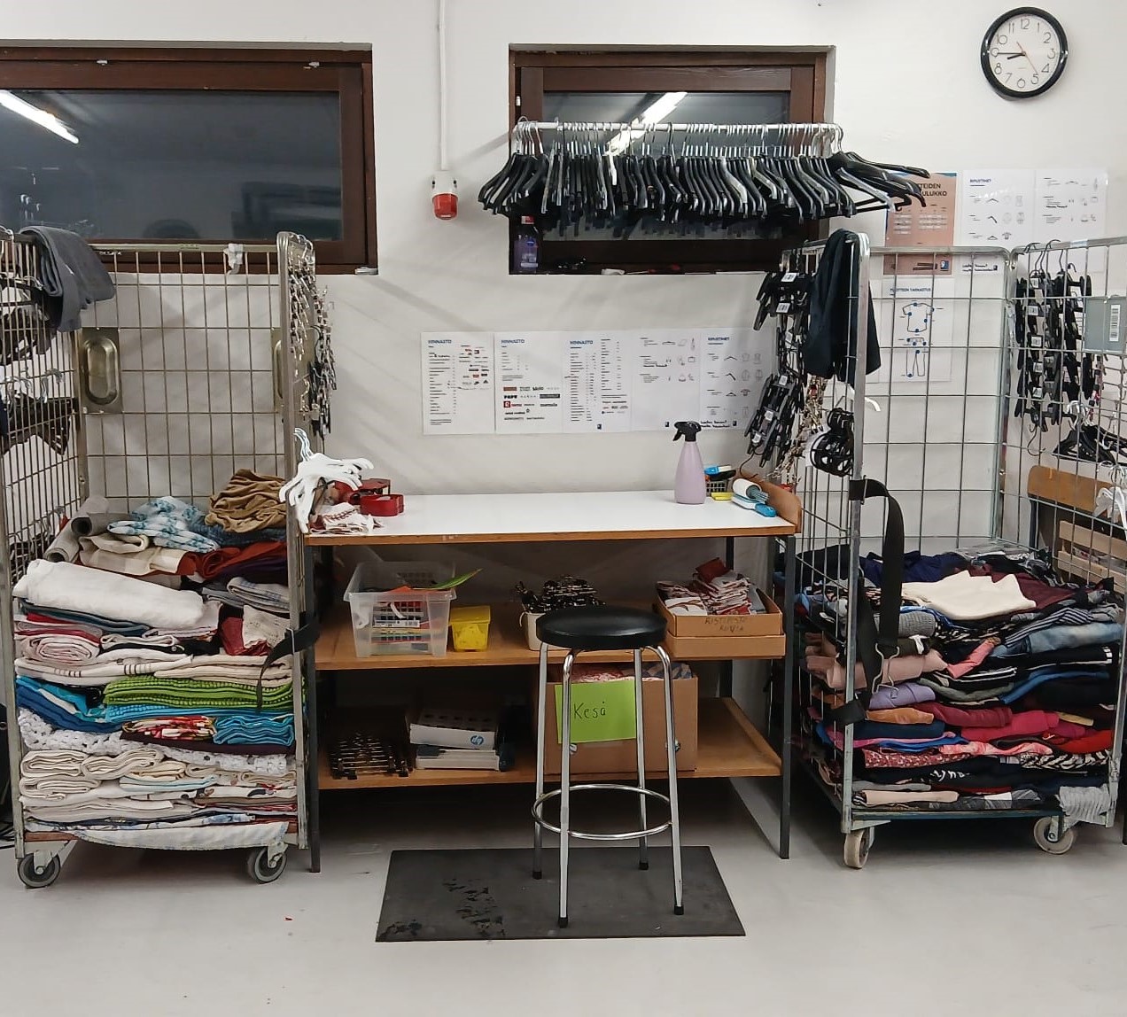 - Myyntikelpoiset tekstiilit silitetään tarpeen vaatiessa ja toimitetaan hinnoittelun kautta kierrätysmyymälään