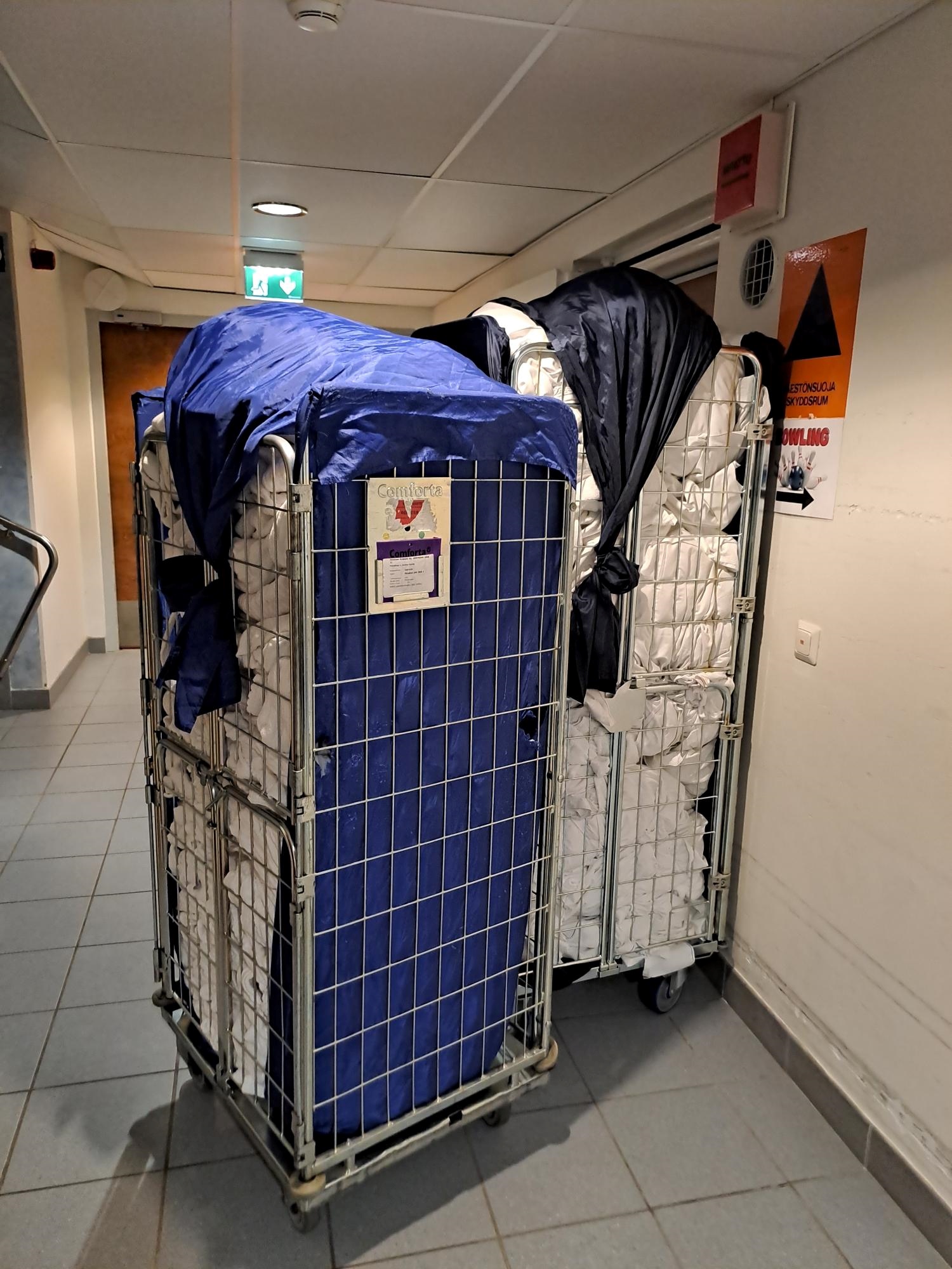 Kylpylähotellista pesulaan lähtevä pyykki.