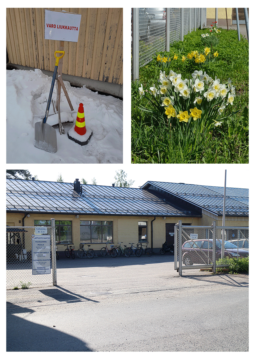 Teemme yhteistyötä Laptuote-säätiön eri osastojen/pajojen kanssa, koska ulkoalueiden hoitoon kuuluu koko Laptuotteen kiinteistön alue. Ulkoalueiden hoitotyötä tekevät kuntouttavan työtoiminnan asiakkaat sekä työkokeilijat.