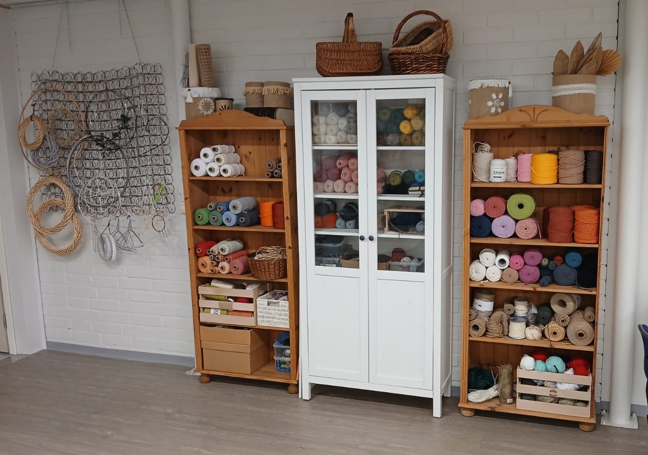 Työ- ja oppimisympäristön käsitöissä käytettäviä materiaaleja.