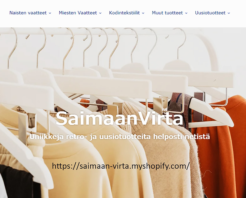 SaimaanVirta ry:n verkkokauppa tarjoaa valmentautujalle mahdollisuuden verkkokauppaan liittyvien työtehtävien oppimiseen. Valikoimissa on yksittäisiä retrotuotteita sekä työpajatuotteita, jotka ovat käsityönä valmistettuja uusiotuotteita. Verkkokaupan osoite on https://saimaan-virta.myshopify.com/.