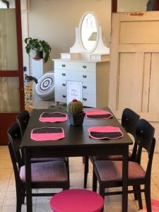 Piironki on asiakastyö ja pöytäryhmä lahjoituksena saatu ja kunnostettu