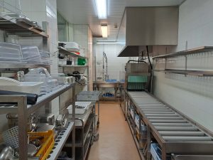 Palvelukeittiöt on varusteltu suurtalouskäyttöön soveltuvilla laitteilla ja koneilla. Niiden käyttöön perehdytään Saimaan Tukipalveluiden ammattihenkilöstön avulla. Keittiössä yleisimmin käytettyjä laitteita ovat yhdistelmäuunit, tiskikoneet sekä tunnelitiskikone. Päiväkodista löytyy kuputiskikone. Ruokailun jälkeen myydään tähderuokaa Mobilepayn avulla, ei käteismyyntiä.