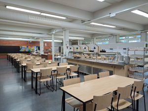 Vuoksenniskan koulukeskuksen palvelukeittiö vastaa noin 700 henkilön ruokailusta päivittäin kahdessa eri keittiössä, uuden ja vanhan koulun puolella. Molemmissa rakennuksissa palvellaan useammalla linjastolla, joista yksi on erityisruokavaliota varten. Lisäksi koulukeskuksen yhteydessä toimii päiväkoti, jossa on oma keittiönsä. Ateriapalveluissa työskentelevä pääsee tutustumaan monipuolisesti näihin eri tehtäviin tuetusti ja ammattitaitoisen henkilökunnan opastuksella. Keittiöissä käytetään suurtalouskeittiöihin tarkoitettuja koneita ja laitteita.