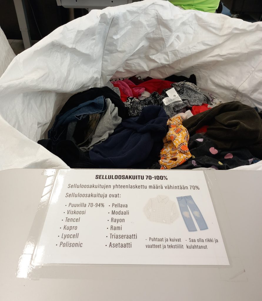 Millaista se poistotekstiilin lajittelu sitten on ja mitä siinä voi oppia? Elävä säätiöllä lajiteltava poistotekstiili tulee farkkurullakkoihin, joita on muun muassa Siilinjärven torin laidalla sijaitsevassa toimipisteessämme Elävä kaupassa. Kuluttajat, eli vaikka juuri sinä, voivat tuoda siihen kulahtaneet, rikkoutuneet ja virttyneet vaatteet ja kodintekstiilit puhtaina suljetuissa muovipusseissa.